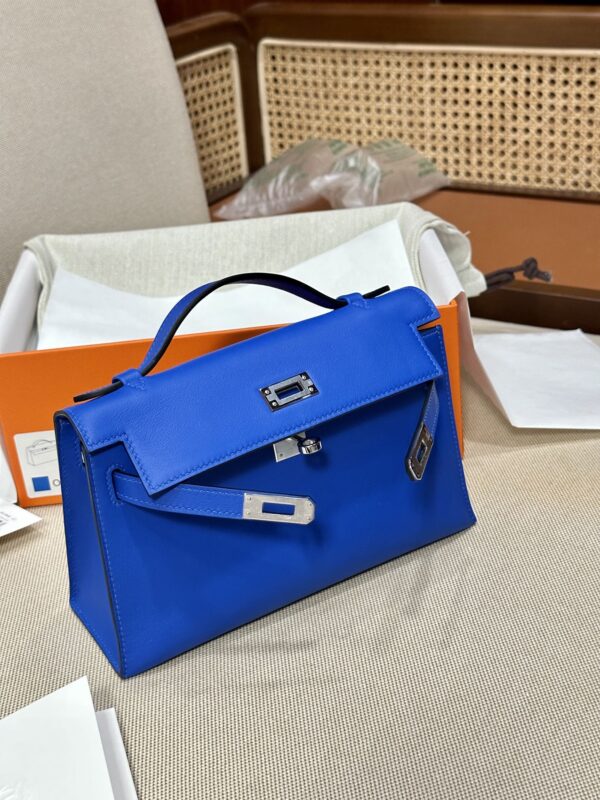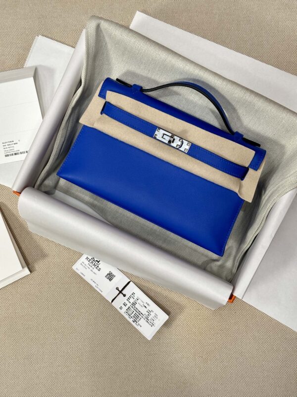Hermes Bag Shop Kelly Pochette 22CM Swift O8 Blue Royal Silver Hardware