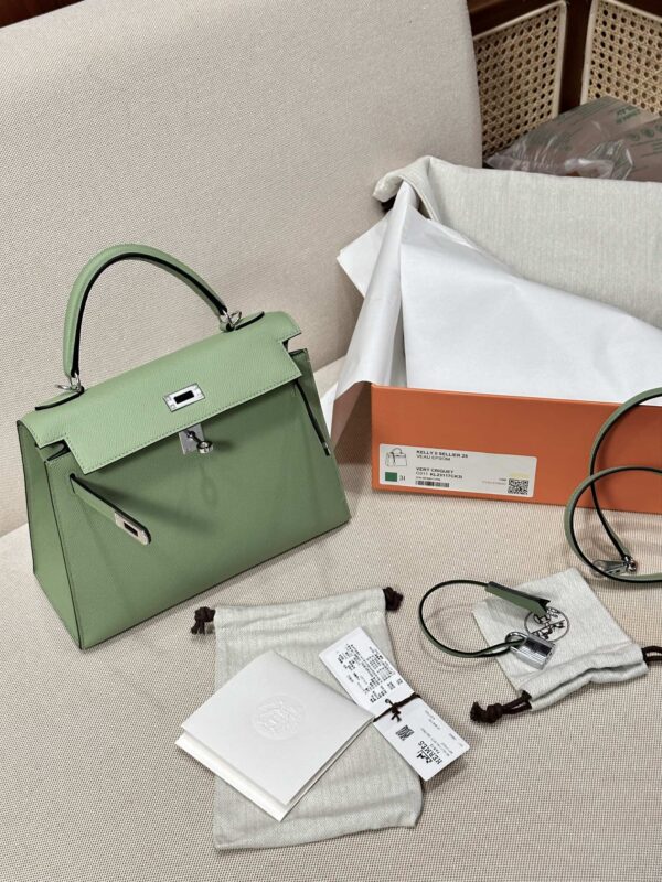 Saudi Arabia Riyadh Hermes Kelly Sellier 25CM Epsom 3I Vert Criquet Silver Hardware